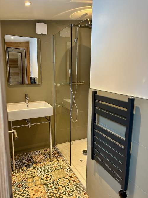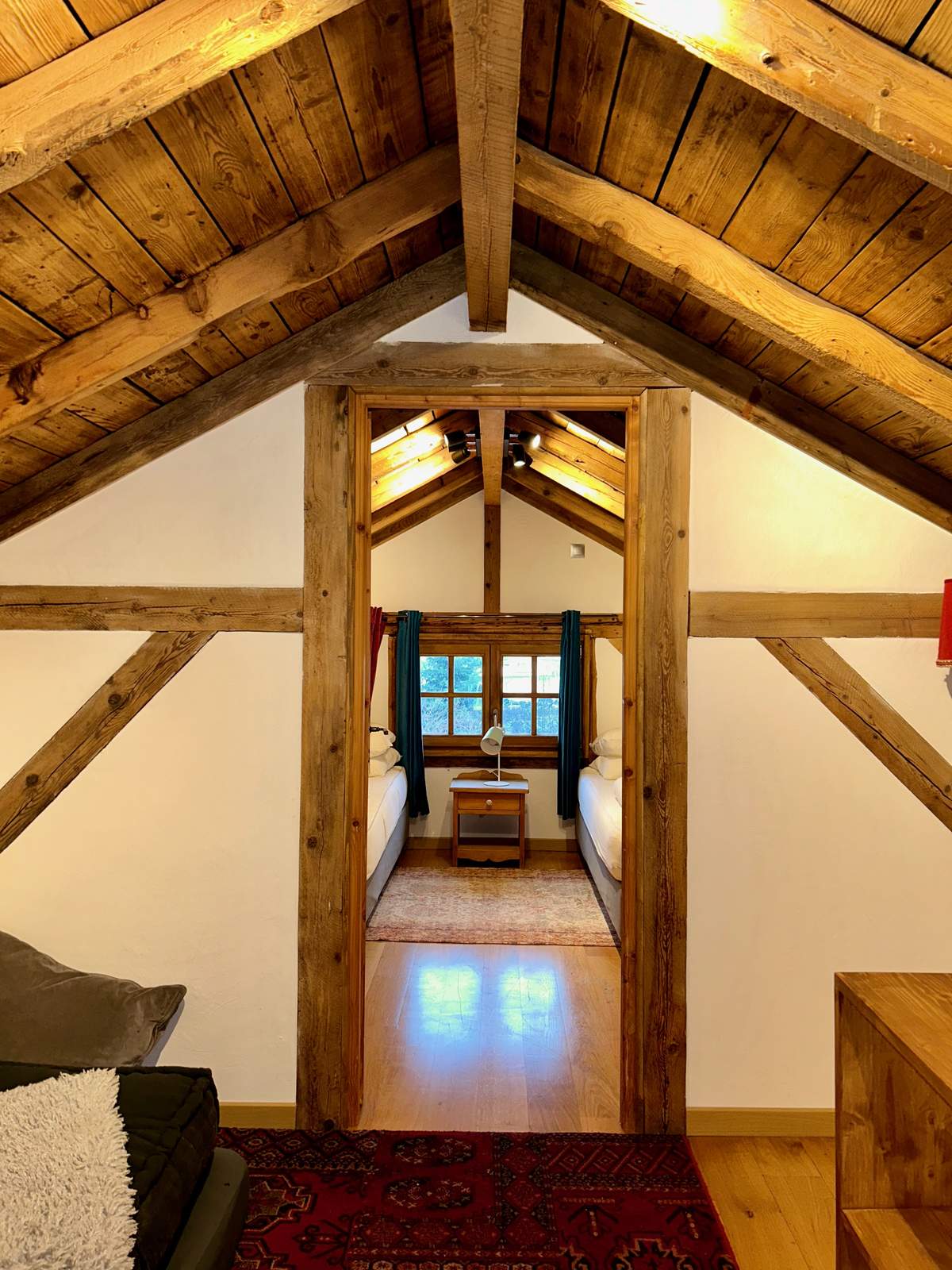The accommodation is both functional, with a full kitchen and space to relax, and ideally located to the centre of Chamonix. It is romantic with all the ambiance of a mountain cabin. With the sound of the stream which runs down beside the property, it is like sleeping in a luxury play house.